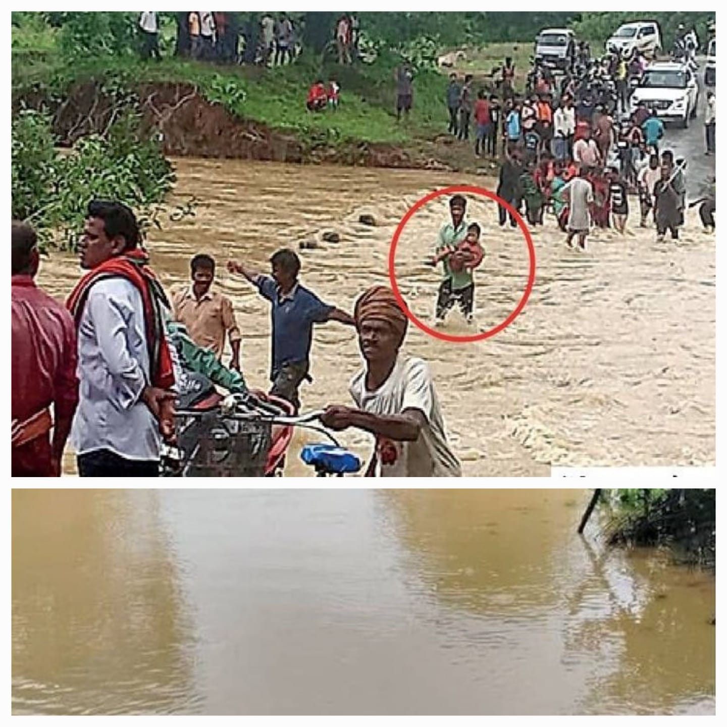 - नोनबिर्रा-रामपुर मार्ग लगातार दूसरे दिन भी बंद रहा। लोग जान जोखिम में डालकर पुल पार करते देखे गए।