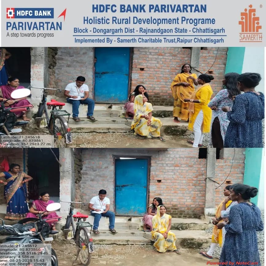 राजनांदगाव।जिला राजनांदगांव के डोंगरगढ ब्लॉक में — HDFC बैंक के HRDP (होलिस्टिक रूरल डेवेलपमेंट प्रोग्राम) ‘परिवर्तन’ प्रोजेक्ट के सहयोग से समर्थ चैरिटेबल ट्रस्ट द्वारा डोंगरगढ़ ब्लॉक की 15 ग्राम पंचायतों में समग्र ग्रामीण विकास की दिशा में अगले 3 वर्षो के लिए महत्वपूर्ण पहल की जा रही है। इन ग्राम पंचायतों में खुर्सीपार, बिलहारी, साहसपुर, पुरैना, कलकसा, अछोली, बेलगांव, विजनापुर, शिवनीकला, मूरमुदा, भोथली, रीवागहन, देवकट्टा, मनकी और शिवपुरी शामिल हैं।